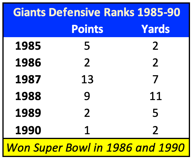 There were several outstanding defensive performances in big games along the way. That included a shutout of Joe Gibbs’ Redskins offense in the 1986 NFC Championship Game, and an unconventional gameplan to hold the Bills to 17 Points in Super Bowl XXV just a week after they scored 51 against the Raiders.