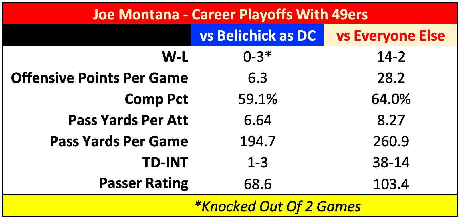 The Giants won two Super Bowls in 1986 and 1990 with defense-first teams led by Belichick. They went through Montana and the Niners both times.