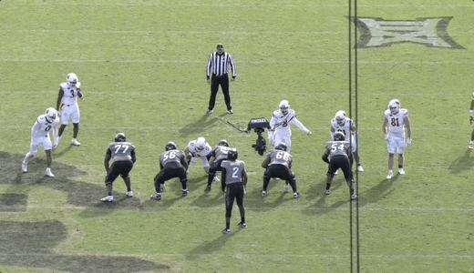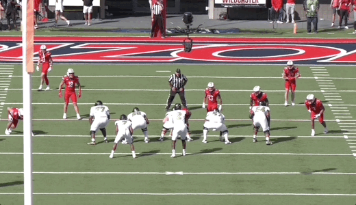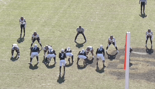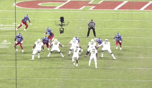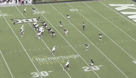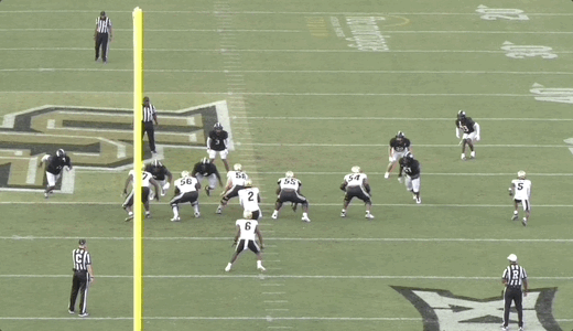 Some of the problem is mechanics-based and therefore more easily correctable. For instance, on the throw below, Sanders’ footwork impacted his ability to get this ball out on time, leading to a missed opportunity: