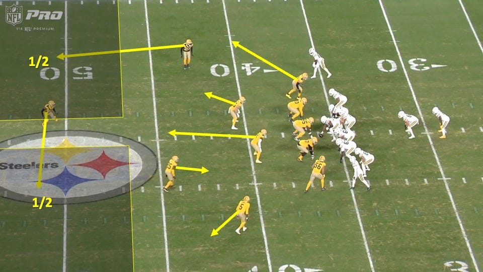 The Packers used play-action, and along with the Steelers’ post-snap movement, that influenced Pittsburgh defenders to move all over the place.