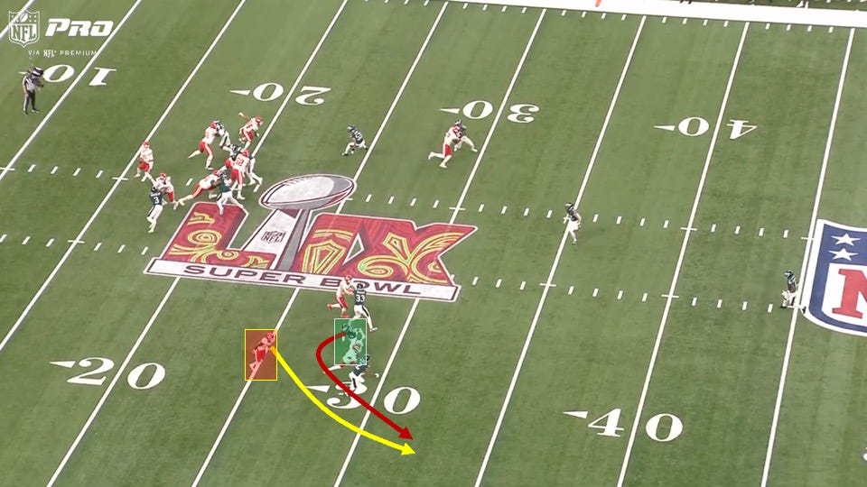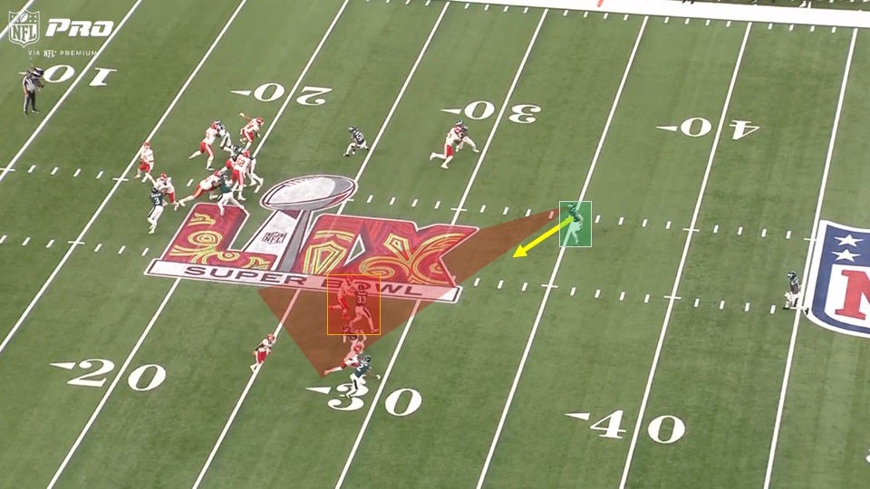 But there were enough plays in there where the Eagles would move post-snap to quarter-quarter-half and take away quick throws that Mahomes thought he had. Whenever the Eagles were able to take away his first read, there wasn’t much time for him to get to #2. Any indecision or hesitation allowed the pass rush a half-second more to get home.