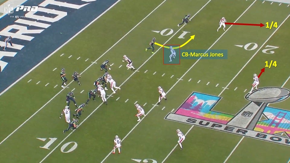 This was all by design. Jones played inside to force JSN to the perimeter. New England wanted Darnold to think he’d have a safe throw.