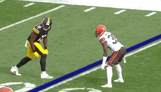 Washington also doesn’t consistently create a ton of separation against press-man coverage, something the top receivers in the NFL generally do. Instead, he is at his best when he has a free release and can use his stem to set up defenders in off coverage: