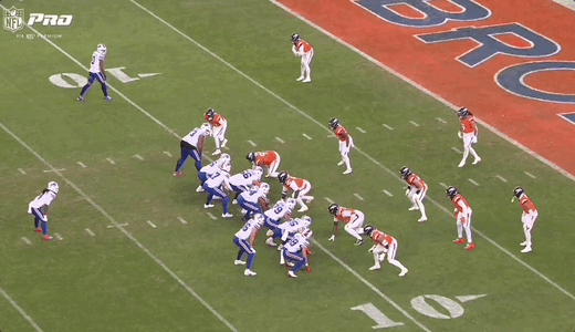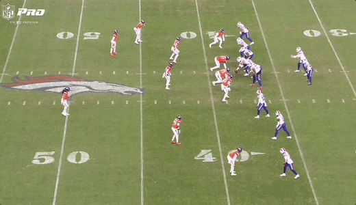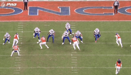 On the sack, he was setting the protection at the line. He saw the blitz. He had James Cook go up and hang out right behind the center in the right A-gap so they could pick up the pressure look that Denver was showing them. There were 1-on-1’s across the board.