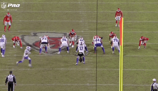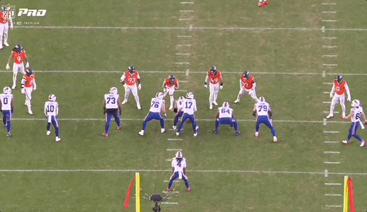 To the left, they had Nick Bonito, and Shakir was kind of right off of the left tackle, ran a little bit of interference on Bonito. And then Dion Dawkins just still couldn’t even get to him. Didn’t even get a hand on Bonito, and he basically had a free rush in on Allen when, on paper, it was supposed to be picked up: