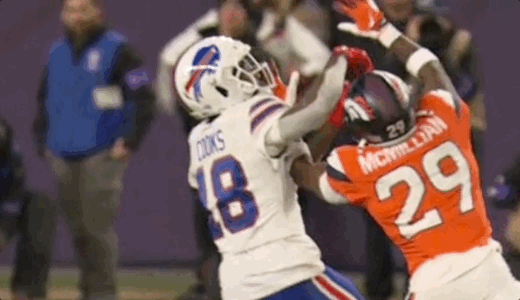 The ball hit Brandin Cooks in the right shoulder pad, and people are still arguing over whether or not it was a catch: