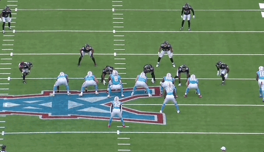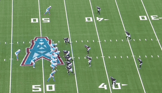 From the end zone angle, you can see the Titans were making a concerted effort to take advantage of Levis’ best asset and attack downfield. Notice the max protection off of play-action: