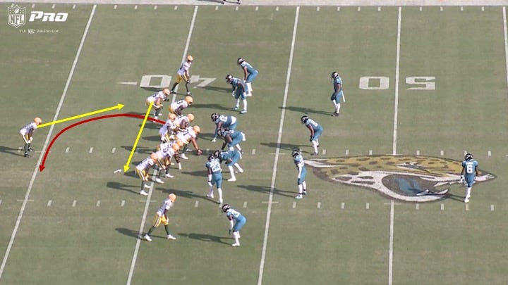 From the way Jacksonville responded to that play, Vrable could see that there was an opportunity to boot right and throw back to the left.