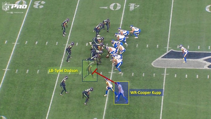 “Cooper Kupp deserves a ton of credit. He secures Dodson coming off of that edge right there. It allows Matthew to be able to escape.”