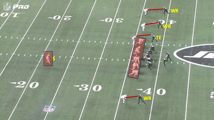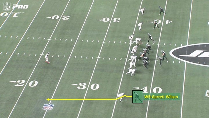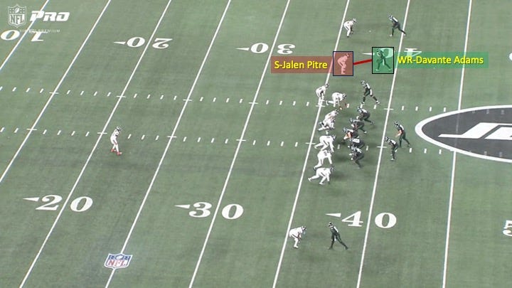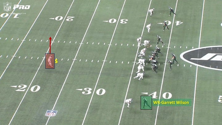 The reason the safety couldn’t “shade” to the field side (where the Jets had 3 receivers) was because that would have left Garrett Wilson all alone: