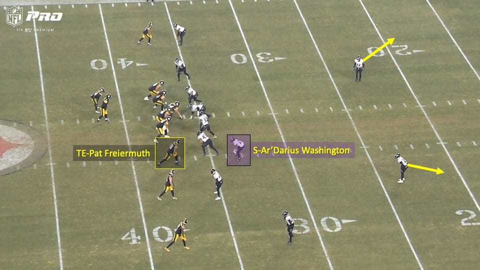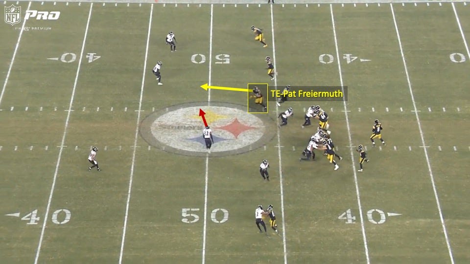Freiermuth would run down the seam and was the vertical route Rodgers wanted: