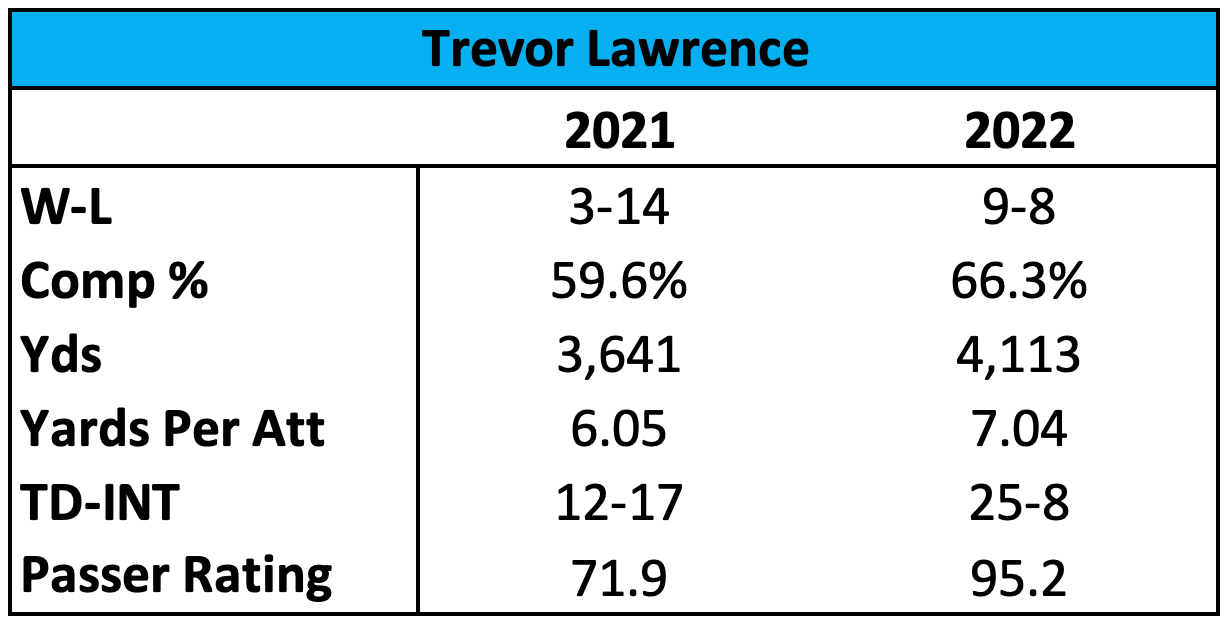Trevor Lawrence’s rookie year was a disaster. As Ed documented extensively last offseason, there were plenty of concerns to his performance aside from the team around him and the turbulent coaching situation.