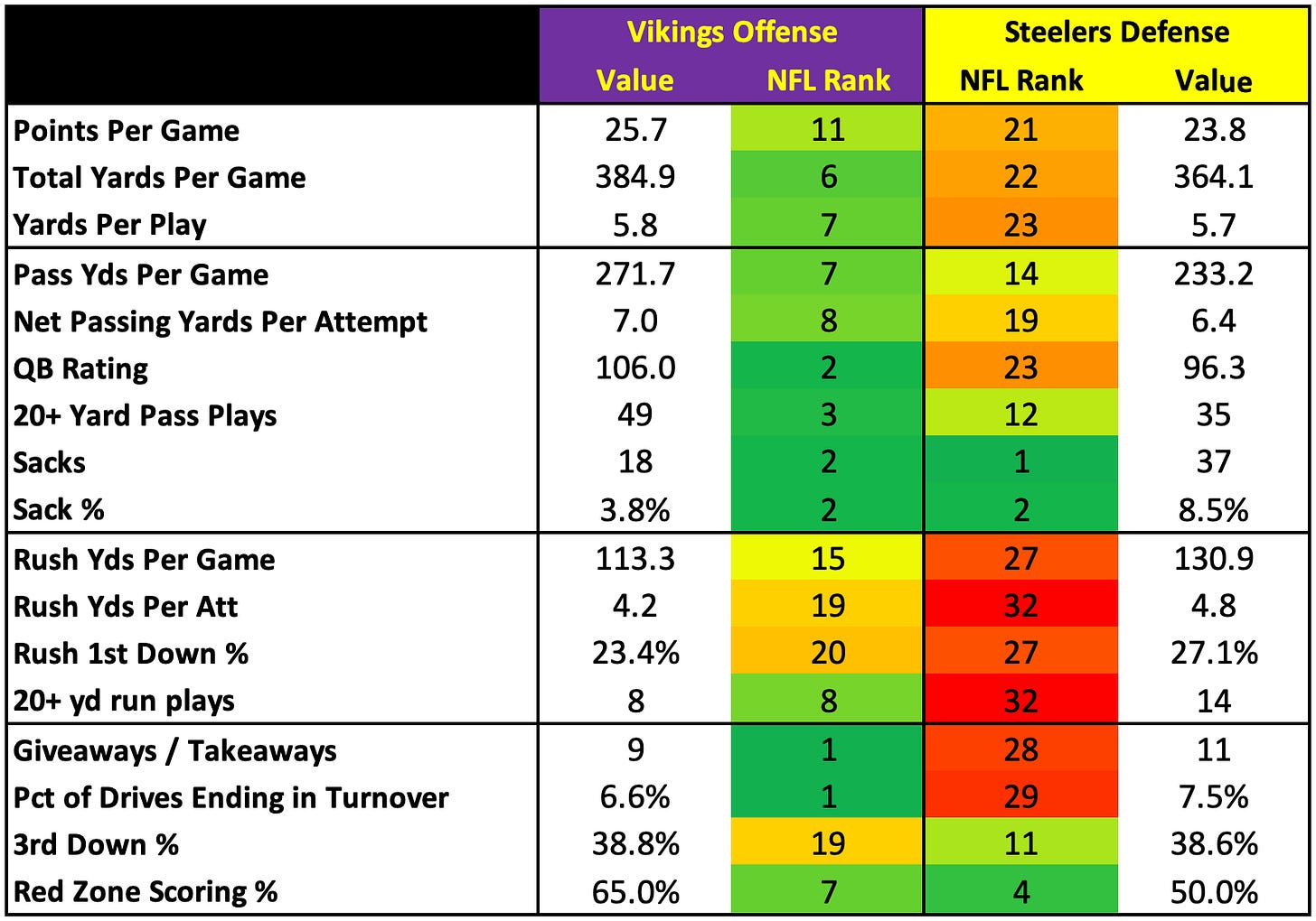 Week 14 - How They Match Up (1 of 2)Nick KehoeDec 10, 2021ShareSteelers vs. VikingsCowboys vs. Football TeamJaguars vs. TitansSeahawks vs. TexansRaiders vs. ChiefsSaints vs. JetsFalcons vs. PanthersPreviousNext