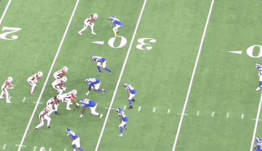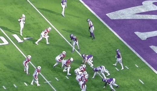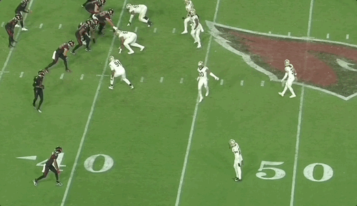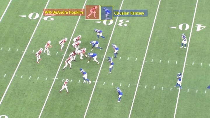 Here’s another example of that great route running. Watch how he attacked his defender’s inside leverage, getting him to turn his hips inside for a split second, which was just enough to give Hopkins room to the outside: