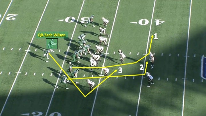 This 3rd-and-2 is a great example. You can see the route concept with the reading progression illustrated below: